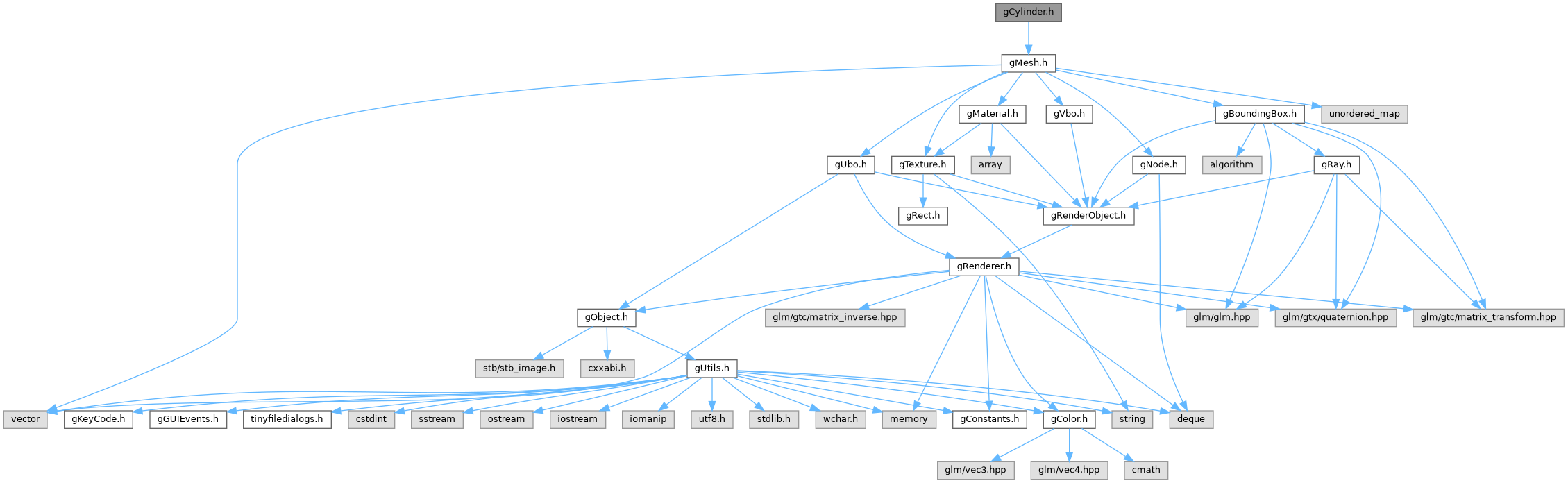 Include dependency graph for gCylinder.h: